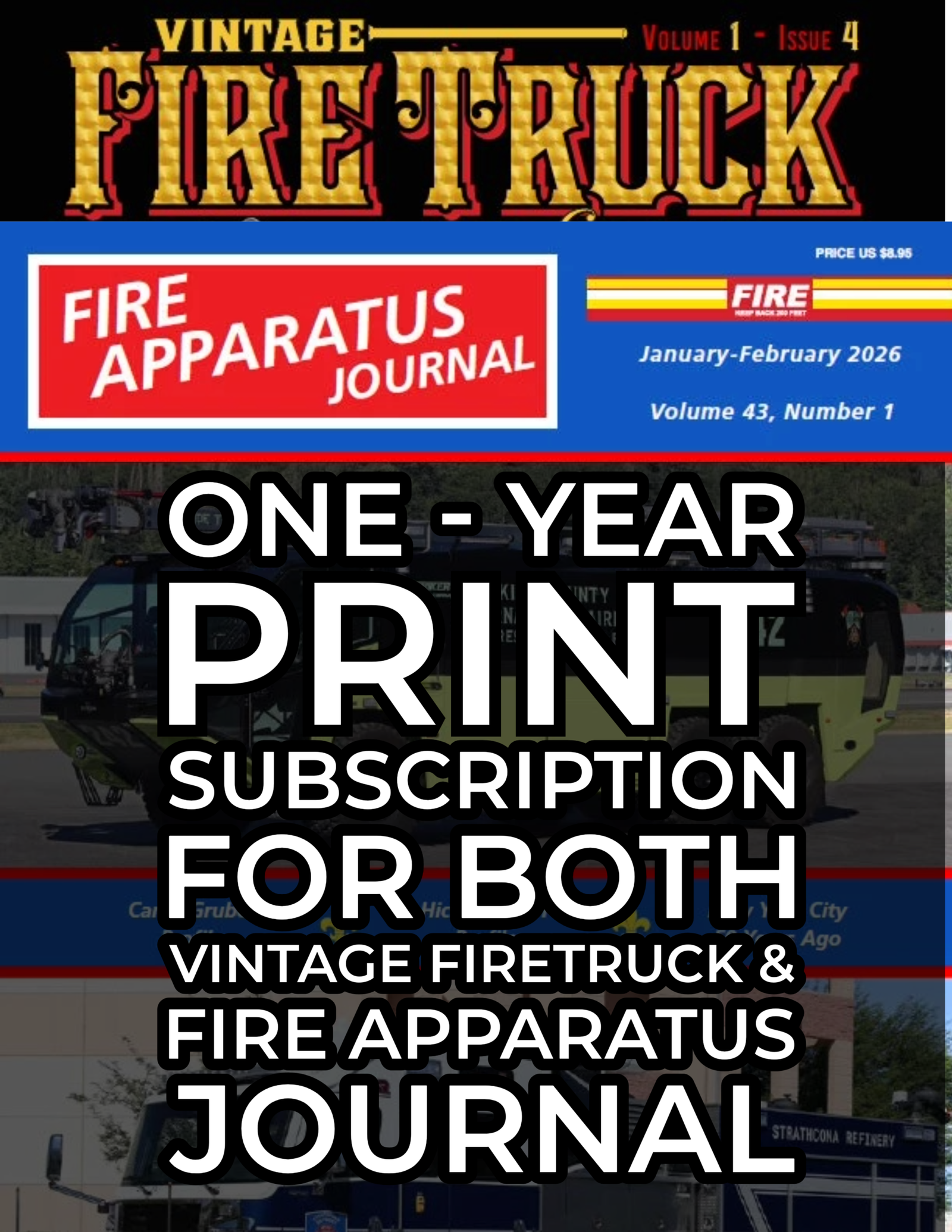 Don’t miss your opportunity to receive two of the fire service industry’s leading printed publications. Subscribe to Fire Apparatus Journal and Antique Fire Trucks & Equipment today for a full year of expertly curated content, stunning photography, and in-depth articles covering both vintage and modern fire trucks, fire apparatus, and firefighting equipment. Stay informed, inspired, and connected to the legacy and evolution of firefighting.